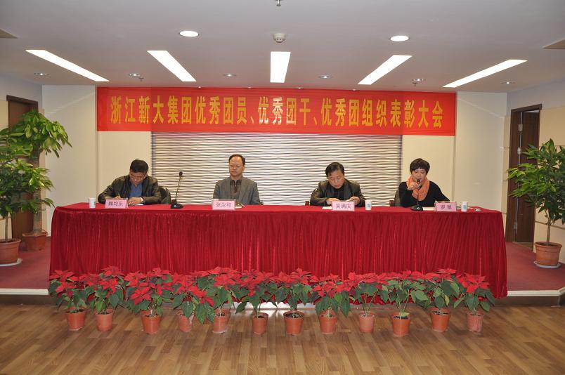 2012年1月10日上午10点,在集团5楼会议室,伴随着激昂、振奋人心的共青团团歌,浙江新大集团2011年度先进团组织、优秀团干及优秀团员的表彰大会隆重举行。出席本次会议的有集团党委副书记、总经理张汝和,集团党委委员、党办主任吴满庆,集团党委委员、工会主席魏均乐,以及各支部团干和获得荣誉称号的团干、团员等共50余名。