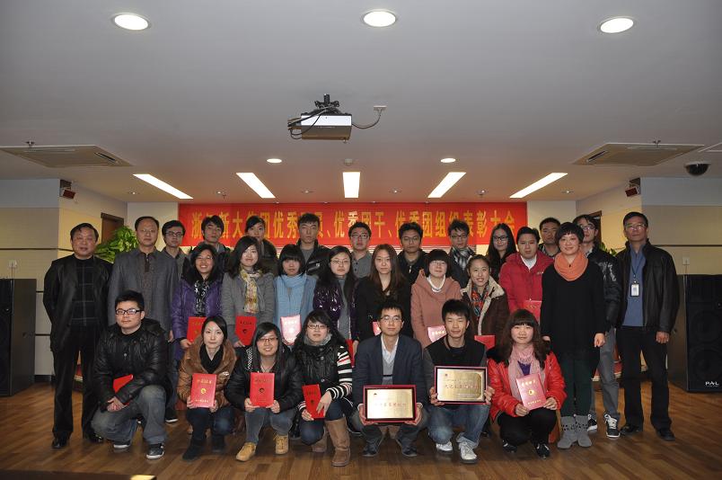 党办主任吴满庆在会上宣读了《关于表彰2011年度先进团组织、优秀团员、优秀团干部的通报决定》。随后,27位优秀先进,满怀着激动地心情,上台领奖,领取这一份属于自己的荣誉。那一本本荣誉证书,不仅是一份荣誉,更是一份责任,在每一位获得表彰的团干、团员的笑容中,除了欣喜更多的是要为共青团的事业继续努力奋斗的决心。