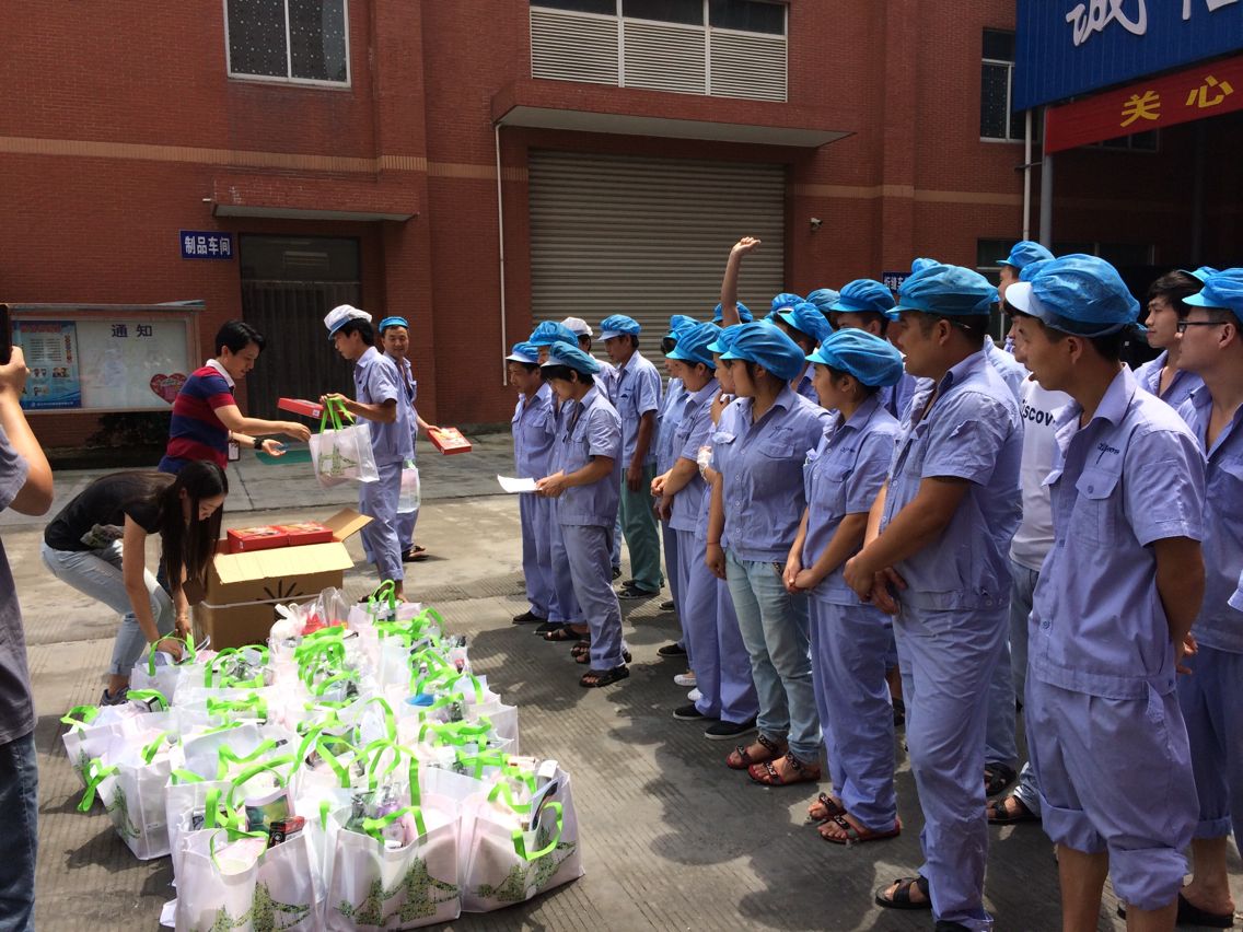 慰问小组成员深入车间,详细地了解工厂员工的工作和生活情况,不仅带去了劳动防护用品和清凉饮料,同时还带上了上级工会和集团领导的嘱托:要求企业必须把安全生产放在第一位,要警钟长鸣。目前正值出货旺季,高温季节并未结束,因此厂领导及各车间主管不但要完成繁重的生产任务,更要关心一线员工身体和生活,做好车间的降温消暑工作。此外,员工宿舍用电情况也要时刻关注,不定期检查,给职工一个平安、清凉的夏天。