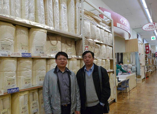 姜益民董事长在集团成员企业华兴羽绒制品有限公司王干友总经理的陪同下,近日考察了华兴羽绒公司在日本销售羽绒制品的三个大卖场。浙江华兴羽绒制品有限公司自99年改制以来,出口规模不断上升,从原来每年出口几百万美元,到09年出口8100多万美元,尤其是羽绒制品在日本市场的销售额逐年攀升,市场占有率更是超过40%。