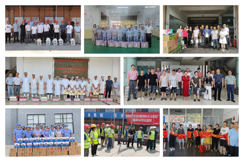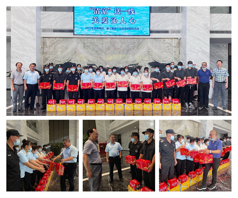 酷暑盛夏,热浪滚滚,正值集团外贸生产出货高峰和工程项目赶抢进度之际,集团一线员工们依然坚守岗位,用他们的汗水,保障了集团各项生产经营活动的稳定。为感谢一线员工的辛勤付出,传递集团对员工的关爱, 自8月中下旬以来,集团工会组织“夏季送清凉”慰问活动,省社、兴合及集团领导陆续深入基层一线,先后前往新大集团位于临安、桐庐、萧山、滨江、大江东、海盐、湖州等地的24家生产基地和房产项目现场,看望、慰问奋战在高温下的一线生产工人及服务保障人员逾千人,送出了价值20余万元的“清凉”大礼包。