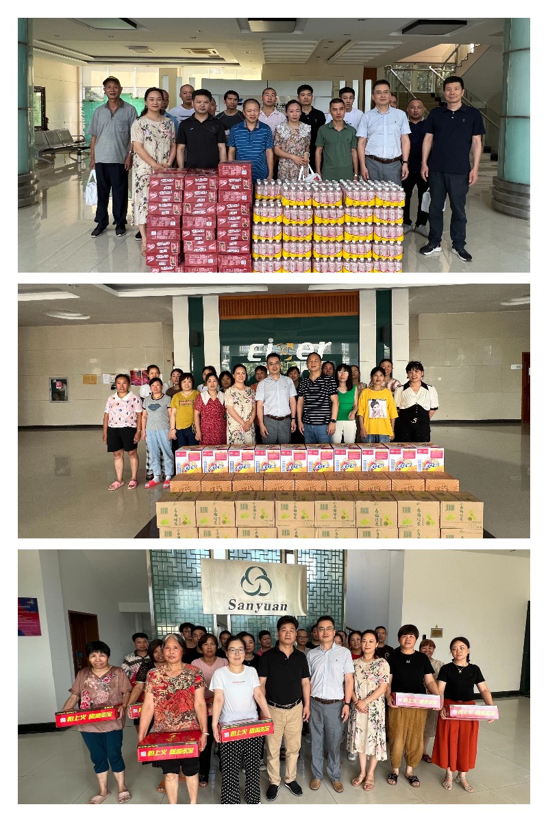 8月18日,新大集团副总经理蒋柱良来到三源公司板房,为大家送上慰问大礼包,送去丝丝清凉。新大集团工会主席罗敏,三源集团副总经理管嵘参加慰问。