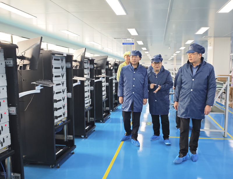 在新甚科技生产车间,一台台整齐排列的精密设备高速自动运转,身着防尘服的技术工人正有条不紊地进行设备操作。赵有国一行走入无尘车间,实地查看半导体存储模组生产各道工序,听取企业负责人关于生产经营、业务开拓、发展计划等情况介绍,对公司成立以来取得的发展成效予以肯定。