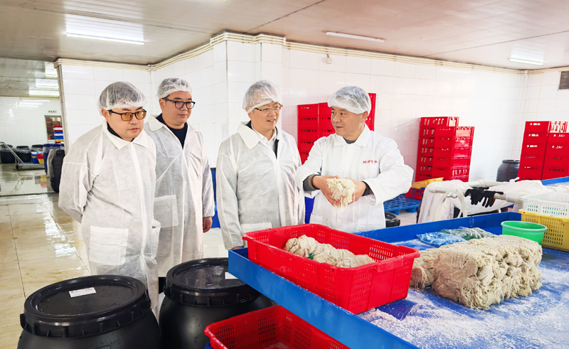 董益彪一行实地考察了肠衣生产加工车间,听取企业负责人关于生产经营的汇报,详细了解公司原料收购、出口外销、产能规划等情况。董益彪指出,农畜产品经营既是新大集团的传统特色业务,也是公司践行为农服务的重要抓手。欧润食品要聚焦主责主业,深耕肠衣细分赛道,发挥企业自身优势,努力扩大市场份额;要持续优化原料收购网点布局,增强优质资源掌控能力,发挥联农带农富农作用;要着眼企业长远发展,科学规划产能布局,多措并举推动降本增效,提升业务经营效益。