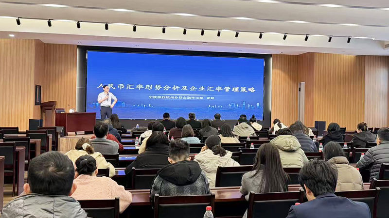 1月14日,新大集团组织开展人民币汇率形势分析及汇率管理策略专题讲座,特别邀请宁波银行杭州分行金融市场部总经理助理谢超进行授课指导。集团副董事长吴元明、副总经理马茂灯,宁波银行吴山支行行长孔均等出席会议,集团财务会计部经理应帅作开场动员,相关职能部门及外贸企业共计60余人参加培训。